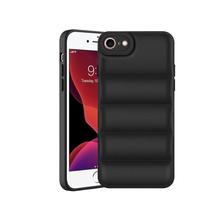 icall Puffer Case Camera Protection Soft Back Cover for Apple iPhone 7|iPhone 8|iPhone Se 2020|iPhone Se 2022- Black – Rubber