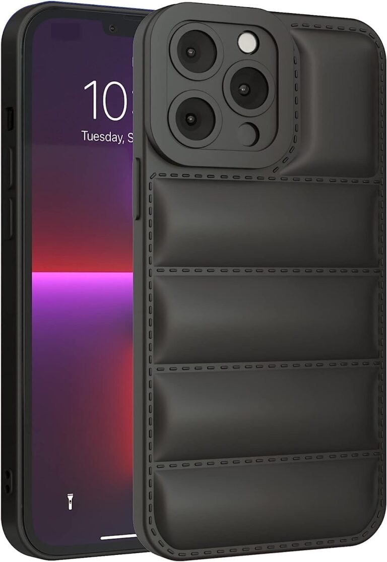 icall Puffer Case Camera Protection Soft Back Cover for Apple iPhone 13 Pro – Black – Rubber