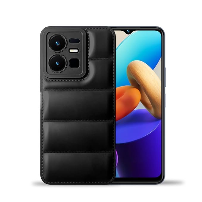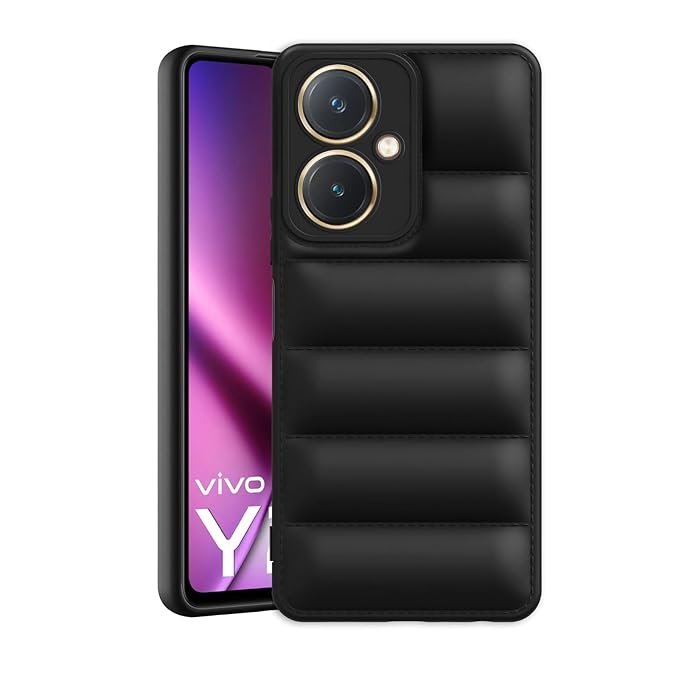icall Puffer Case Camera Protection Soft Back Cover for Vivo V29e 5G – Black – Rubber