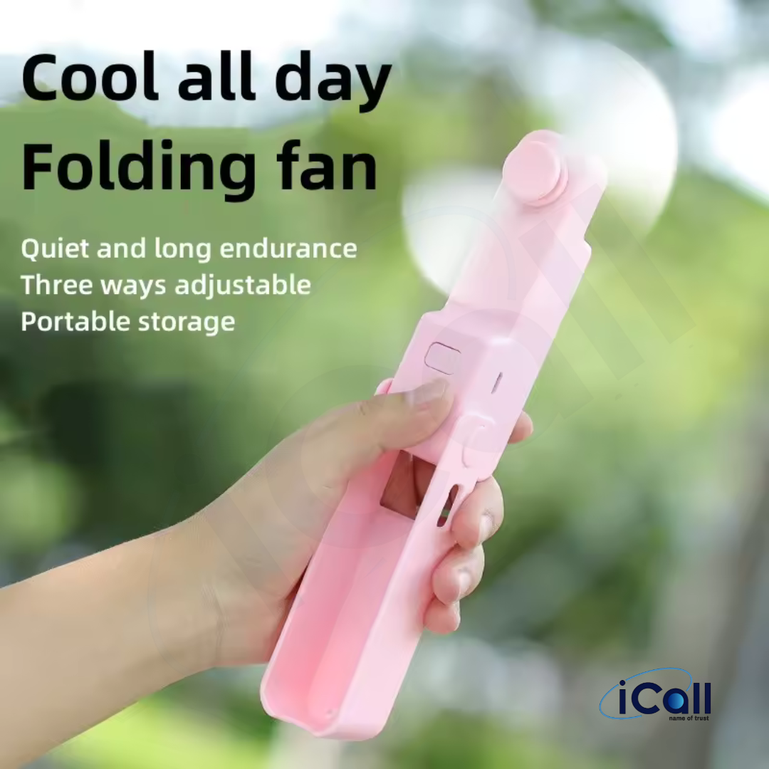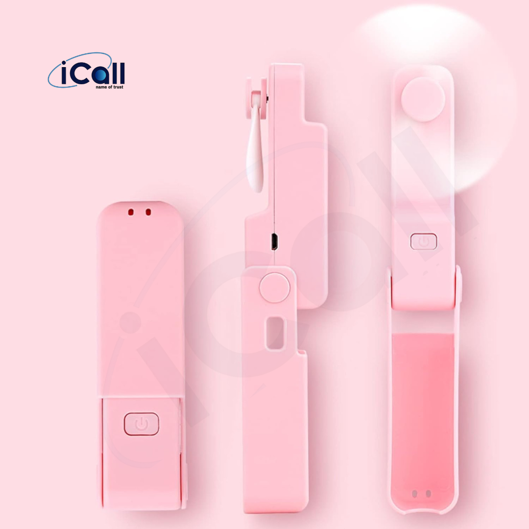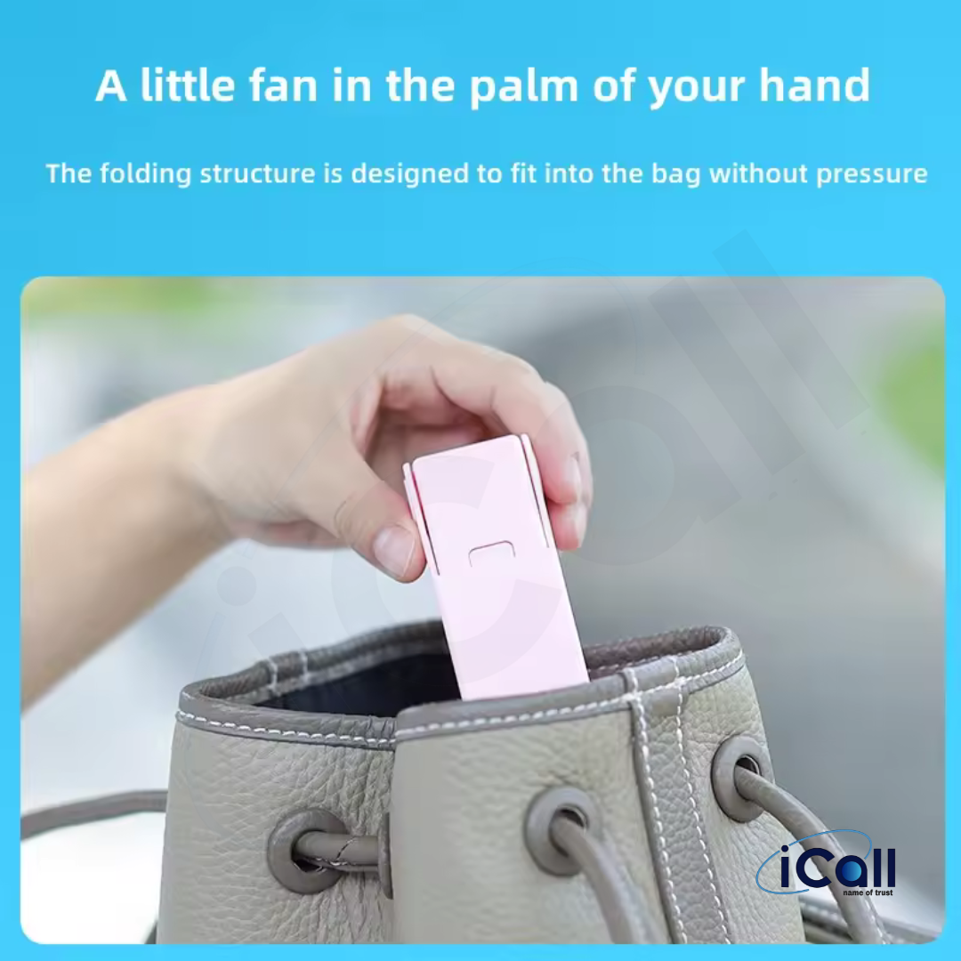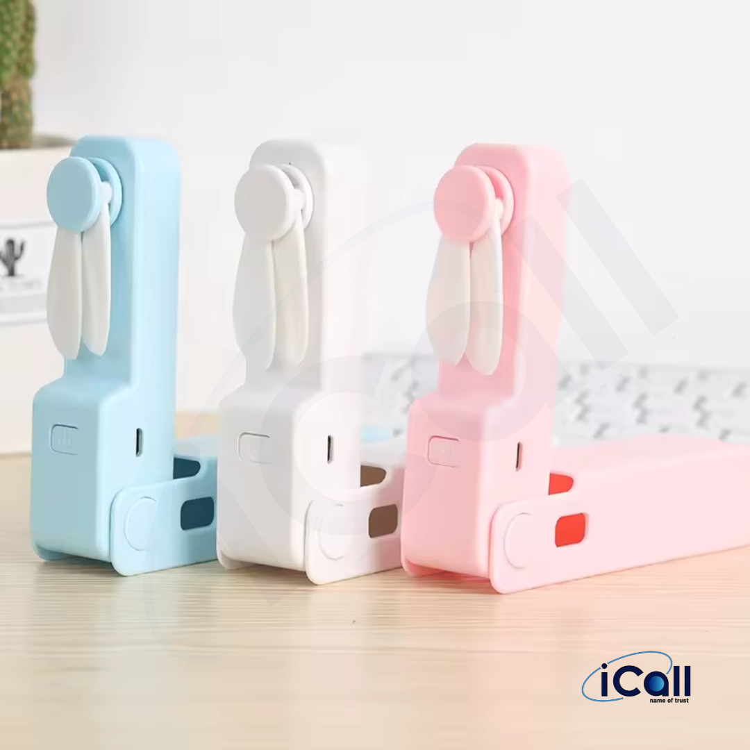 icall Mini Pocket LD1 Hand Fan (3 Speed) modes Build-in Rechargeable Battery with Table Holder Powerful Rechargeable Fan