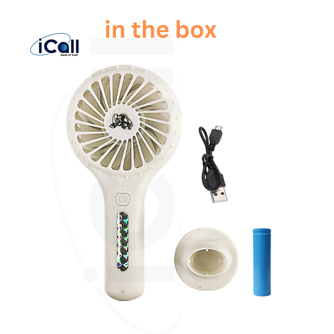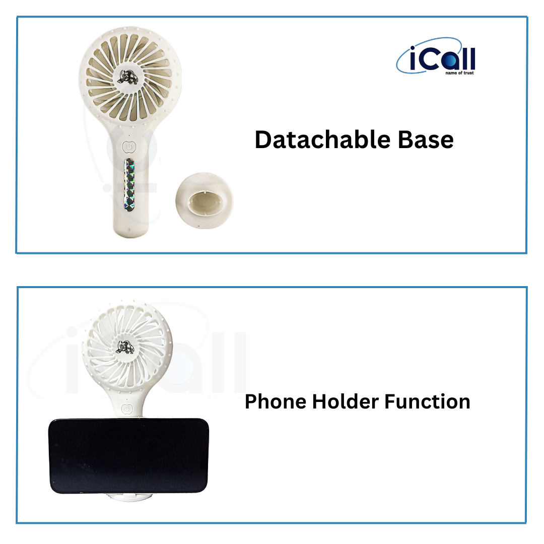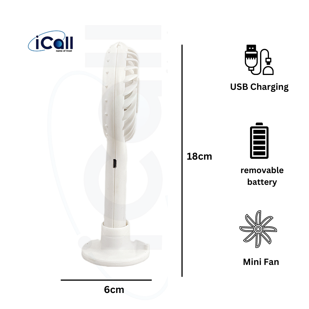 icall LD4 Mini Portable Hand Fan (3 Speed) modes Build-in Rechargeable Battery with Table Holder Powerful Rechargeable Fan