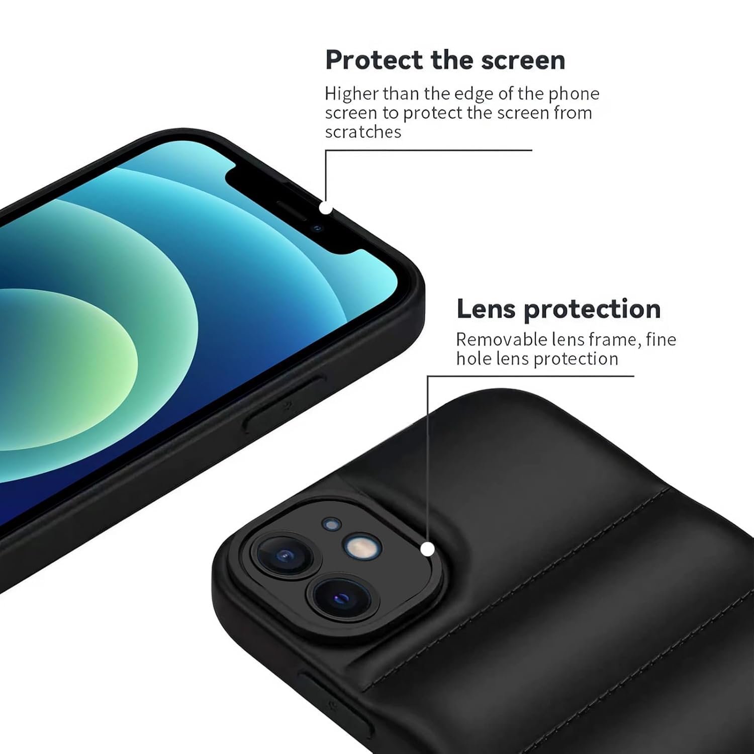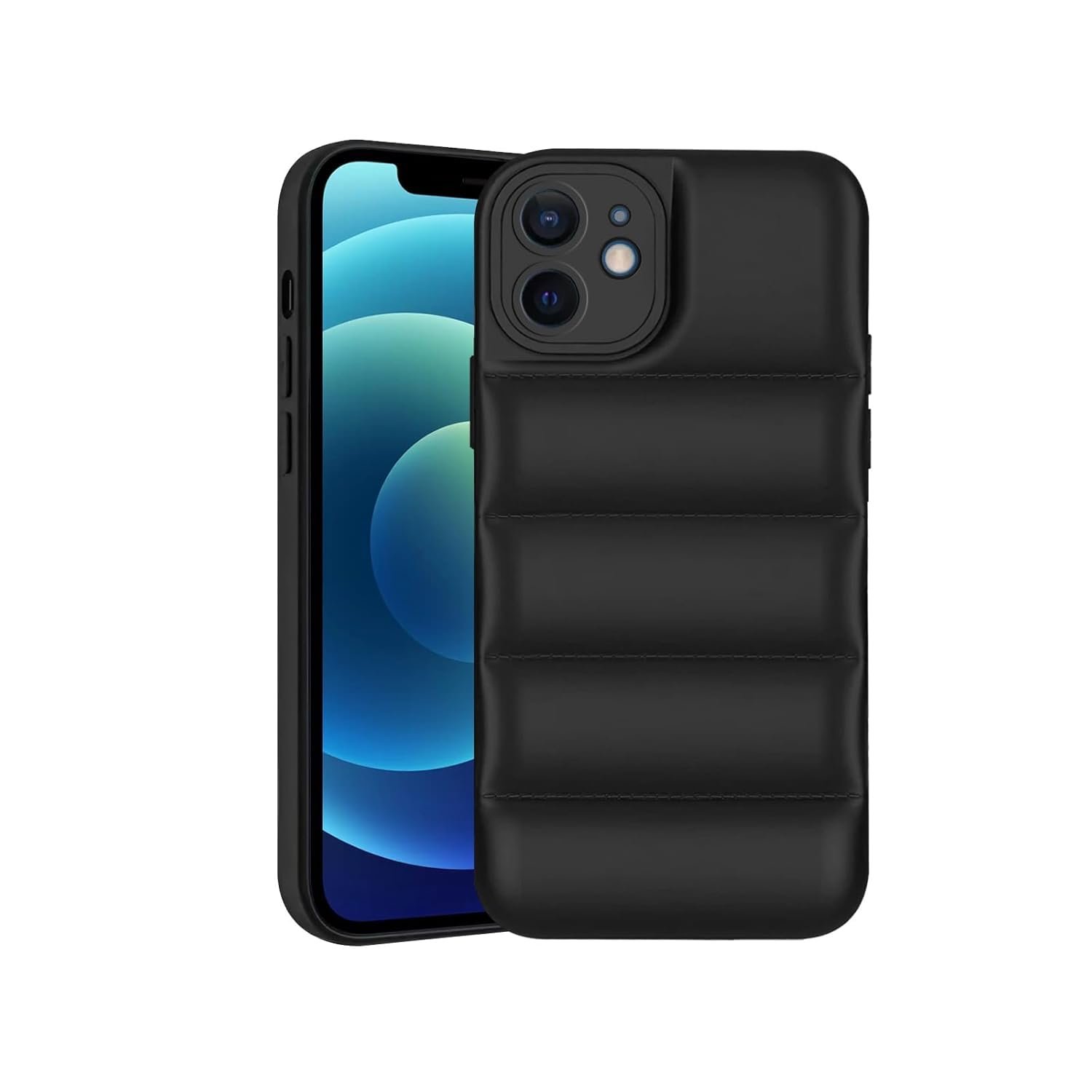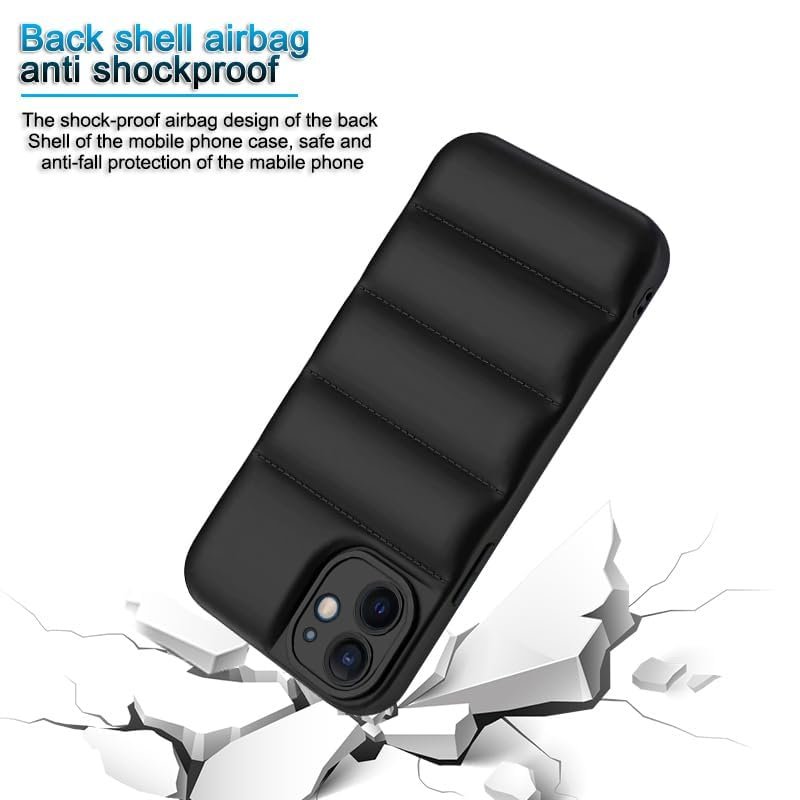 icall Puffer Case Camera Protection Soft Back Cover for Apple iPhone 12 – Black – Rubber