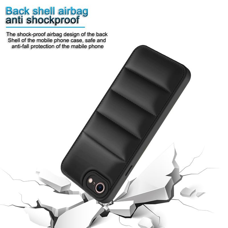 icall Puffer Case Camera Protection Soft Back Cover for Apple iPhone 7|iPhone 8|iPhone Se 2020|iPhone Se 2022- Black – Rubber