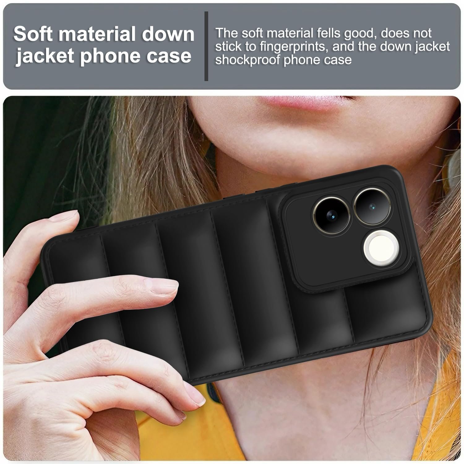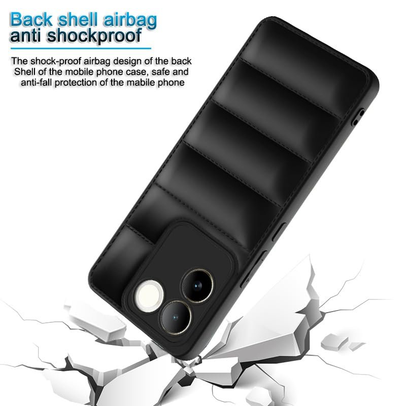 icall Puffer Case Camera Protection Soft Back Cover for Vivo Y17s - Black - Rubber