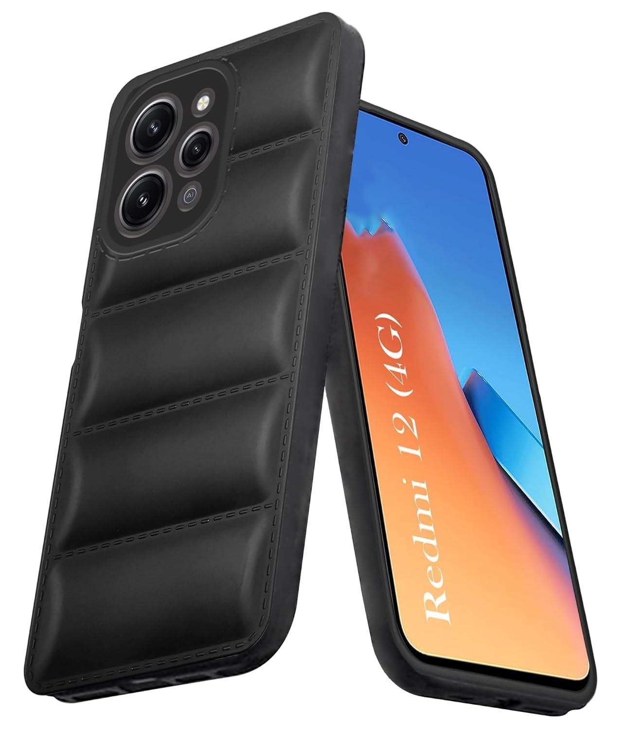 icall Puffer Case Camera Protection Soft Back Cover for Mi Redmi 12 4G – Black – Rubber