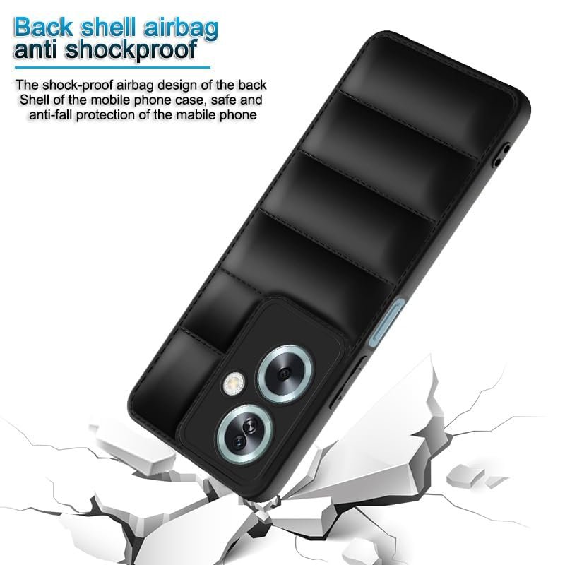 icall Puffer Case Camera Protection Soft Back Cover for Oppo A79 5G – Black – Rubber