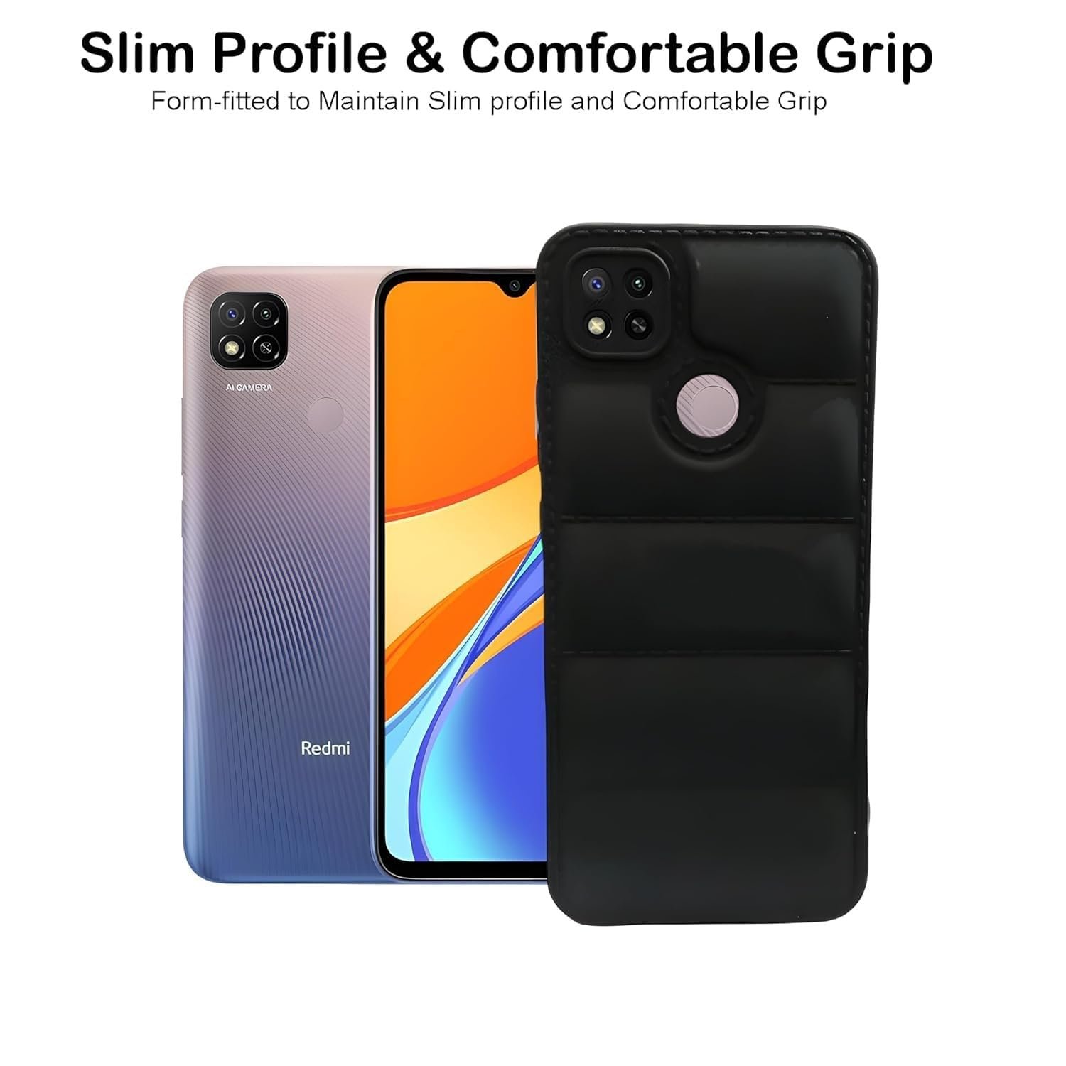 icall Puffer Case Camera Protection Soft Back Cover for Redmi 9C – Black – Rubber