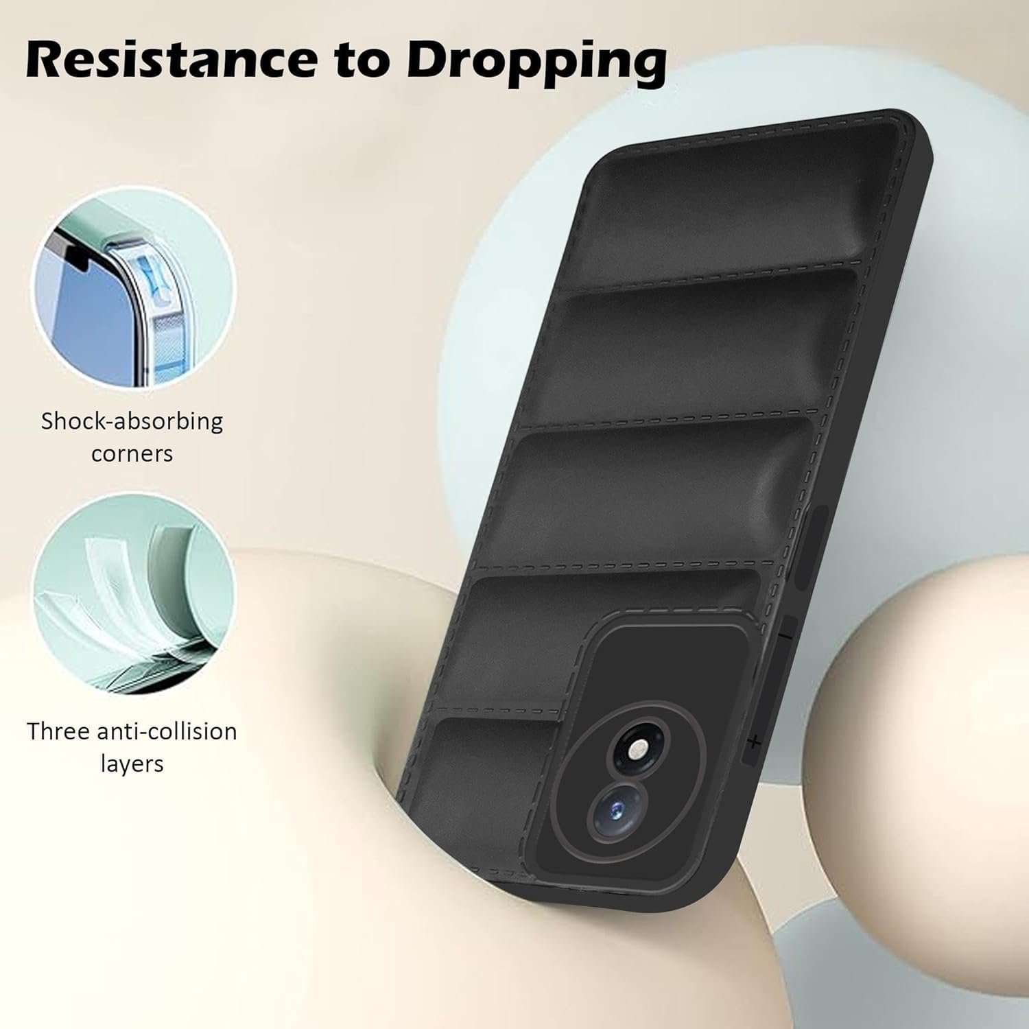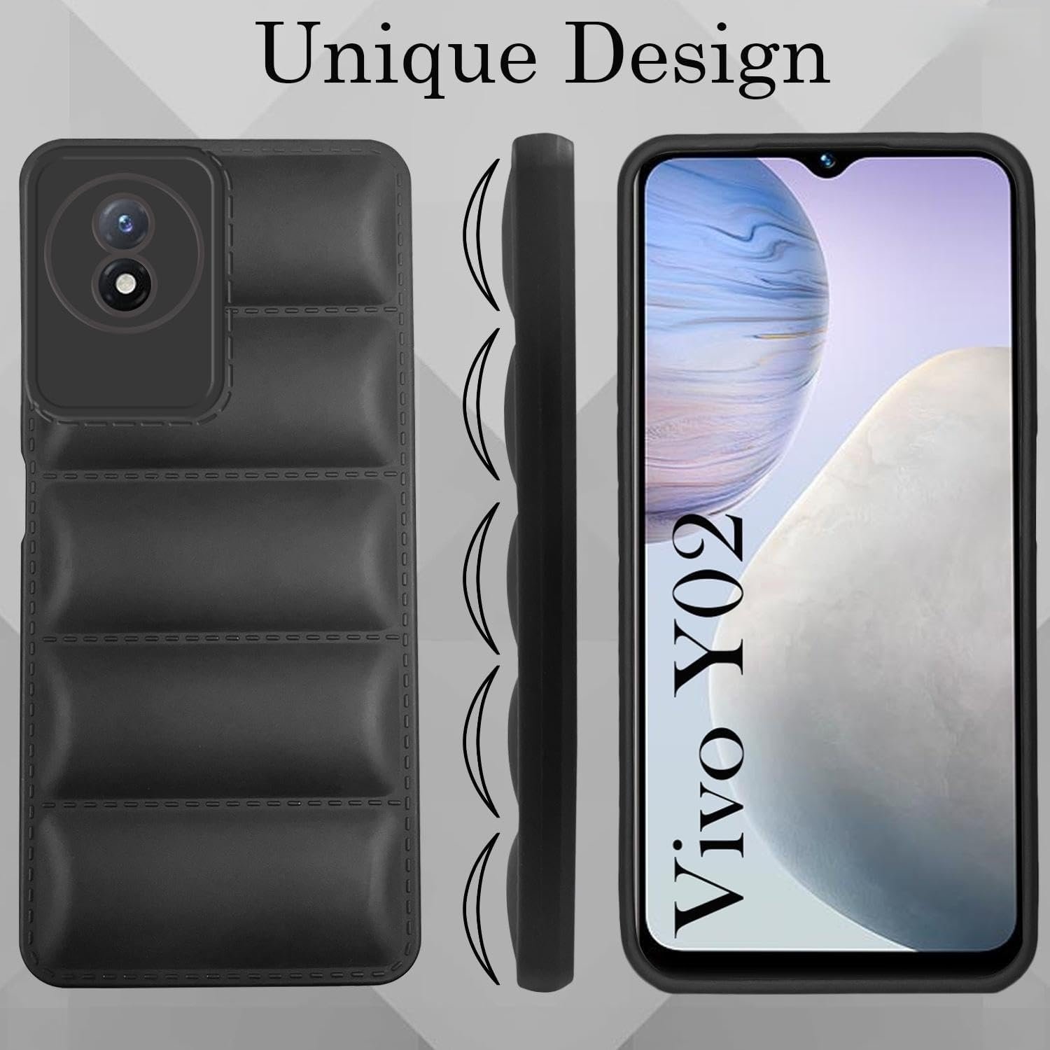 icall Puffer Case Camera Protection Soft Back Cover for Vivo Y02 4G / Y02T 4G / Y02A 4G – Black – Rubber