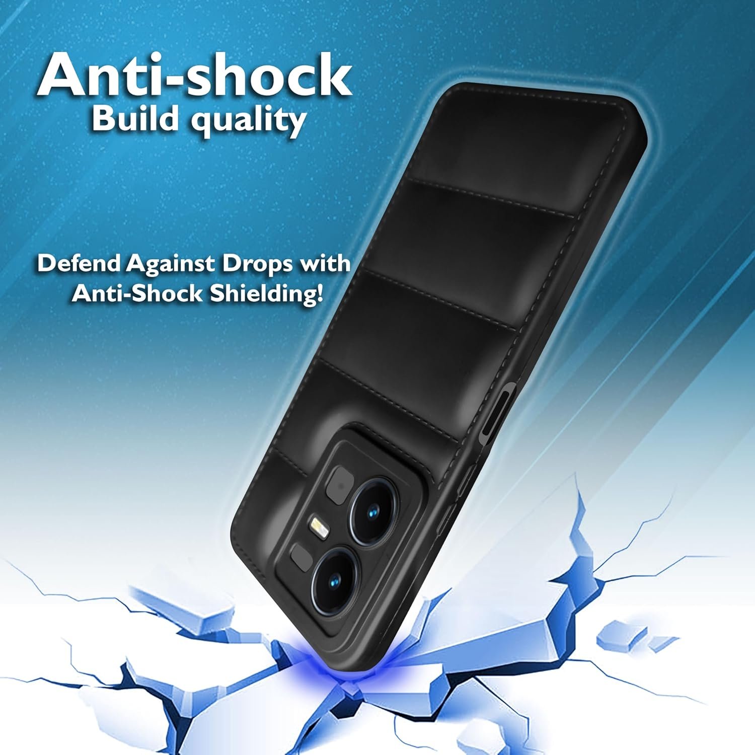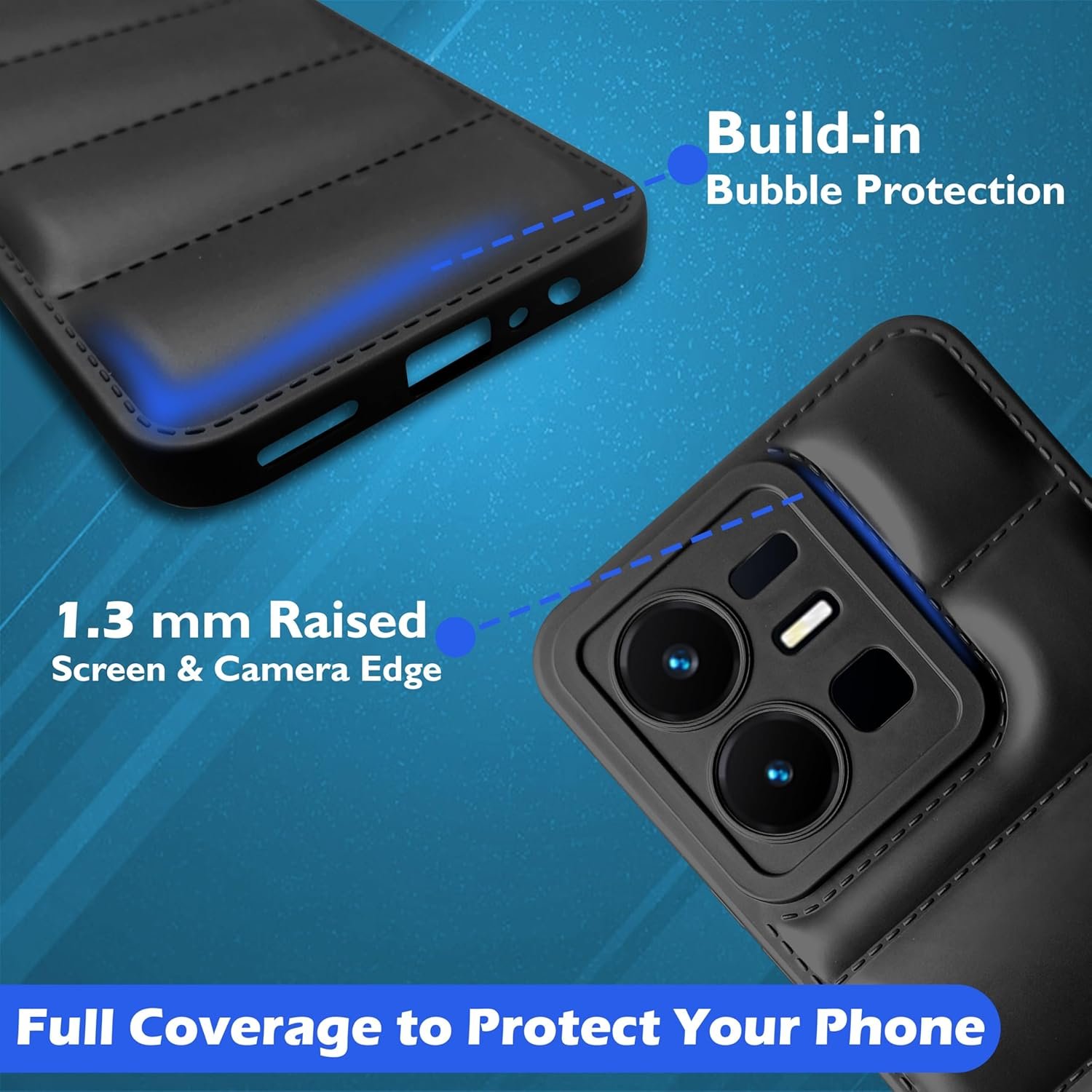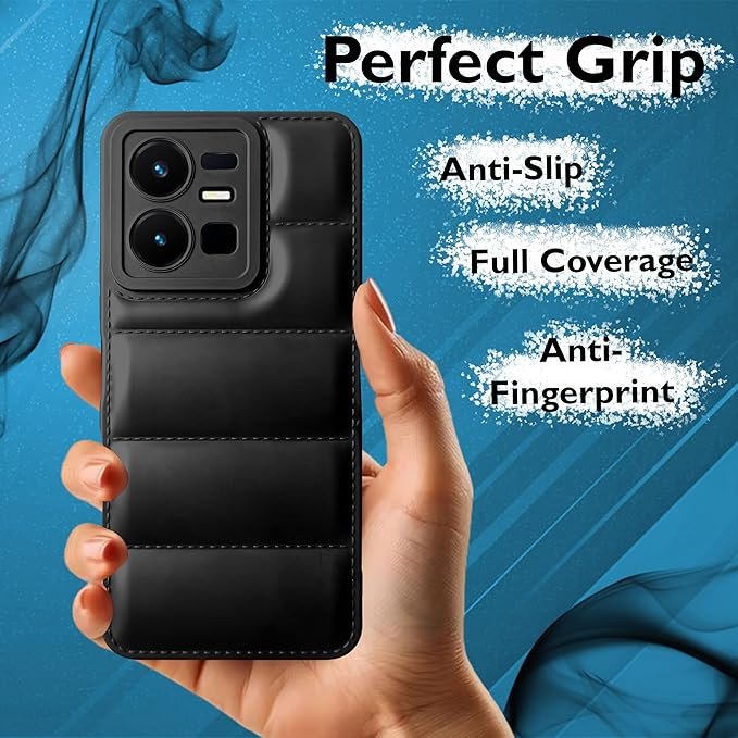 icall Puffer Case Camera Protection Soft Back Cover for Vivo Y22 – Black – Rubber
