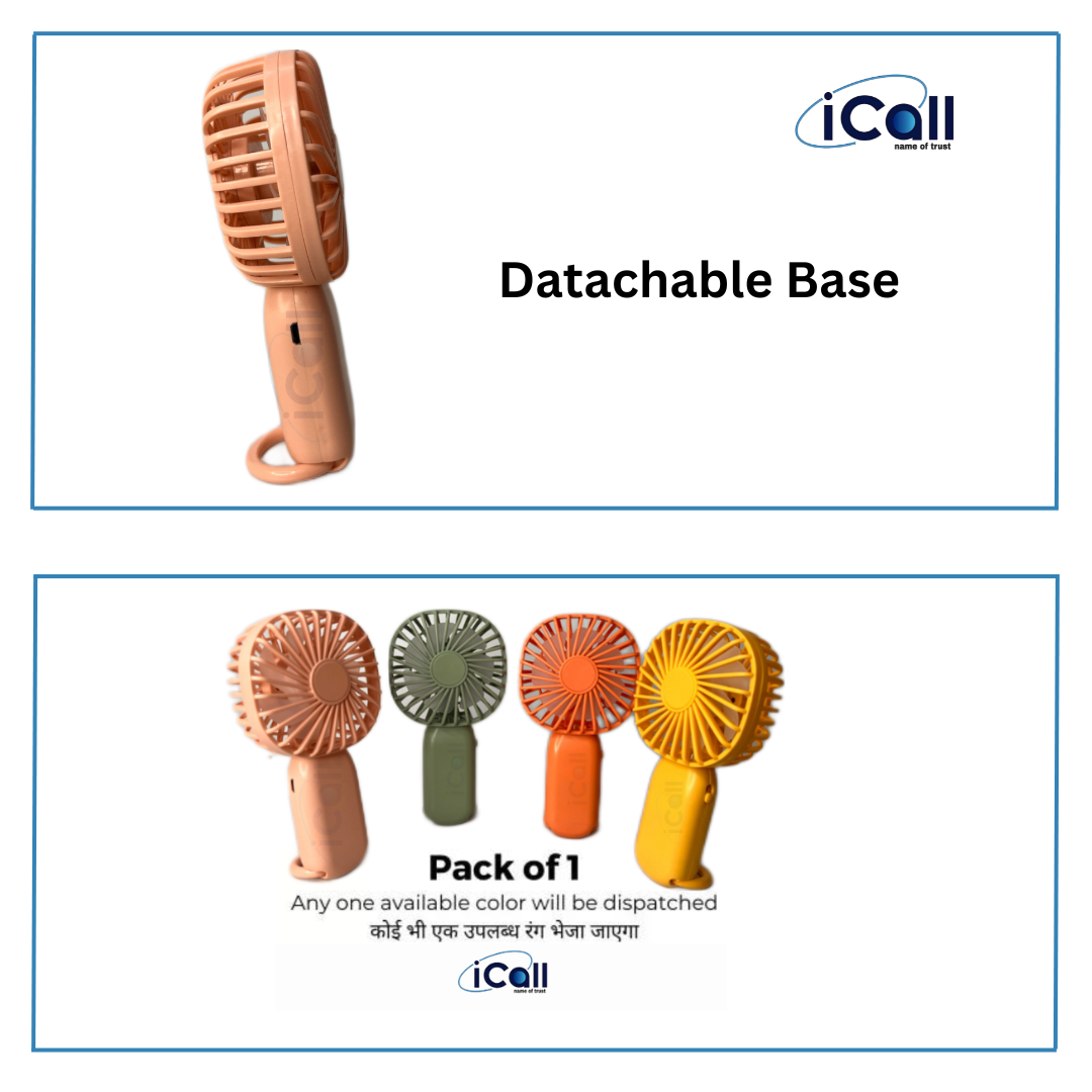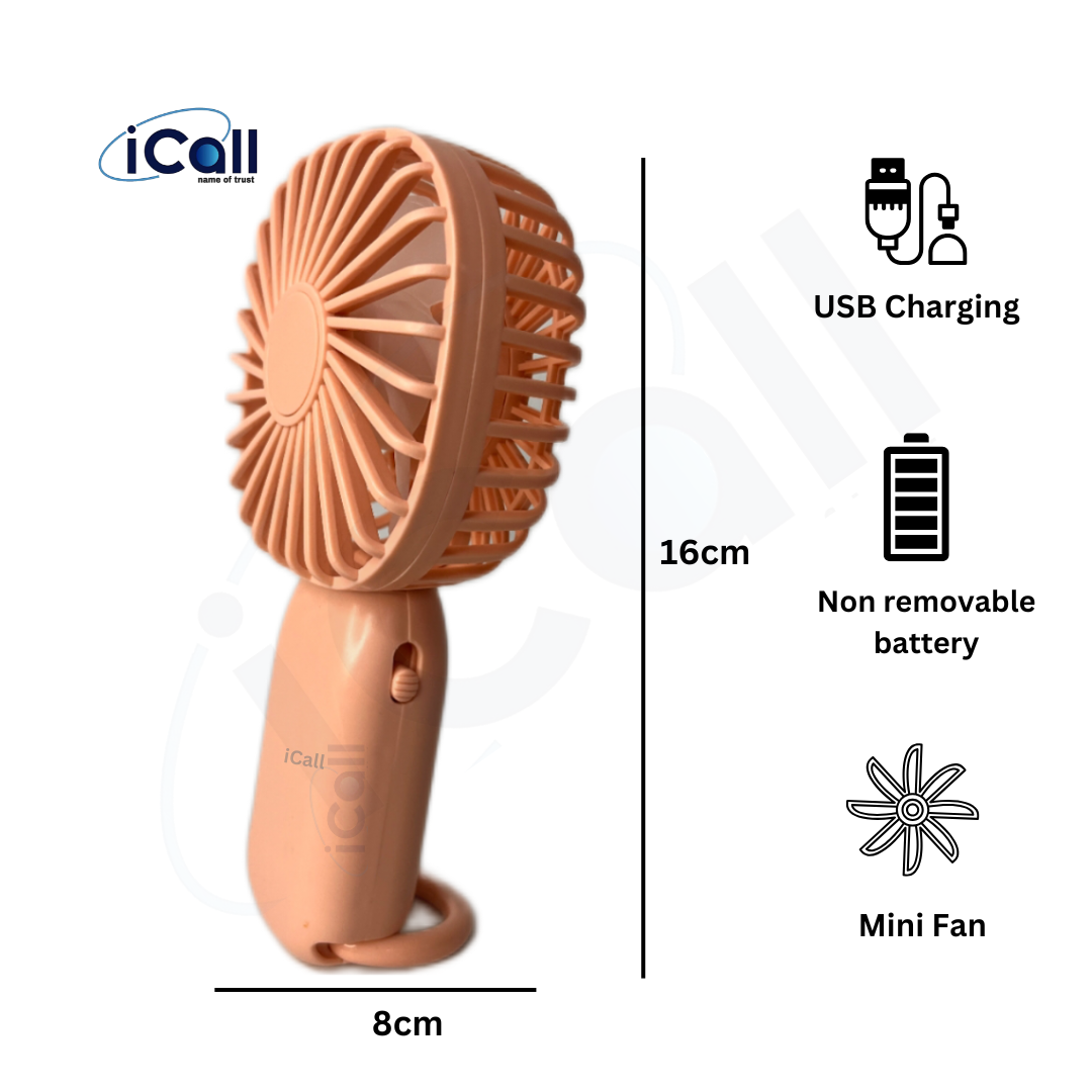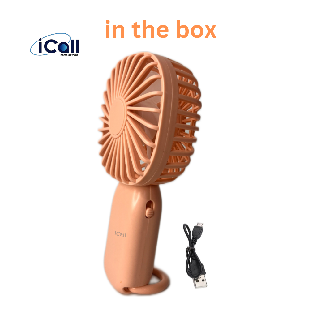 icall Rechargeable Mini LD9 Hand Fan with Light Build-in Rechargeable Battery with Table Holder for Home, Makeup, Office, Indoor, Outdoor, Travel Rechargeable Fan