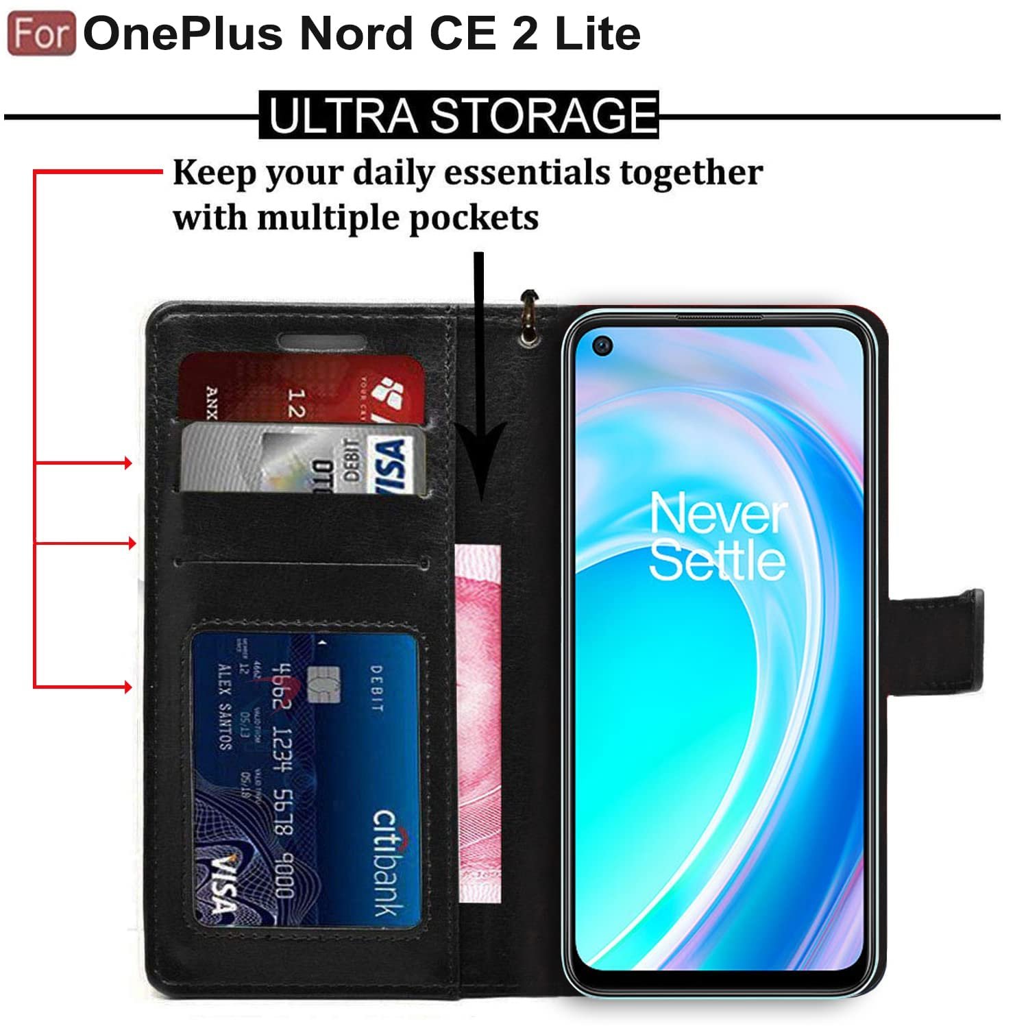 icall Shock Proof Flip Cover Back Case Cover for OnePlus Nord CE 2 LITE 5G (Flexible | Leather Finish | Card Pockets Wallet & Stand