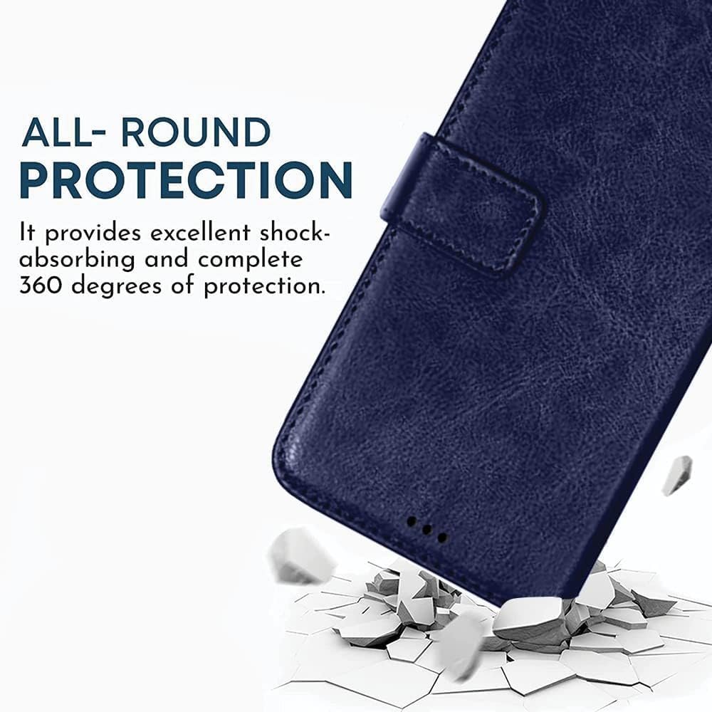 - Protective flip case with card pockets, wallet design, and magnetic closure