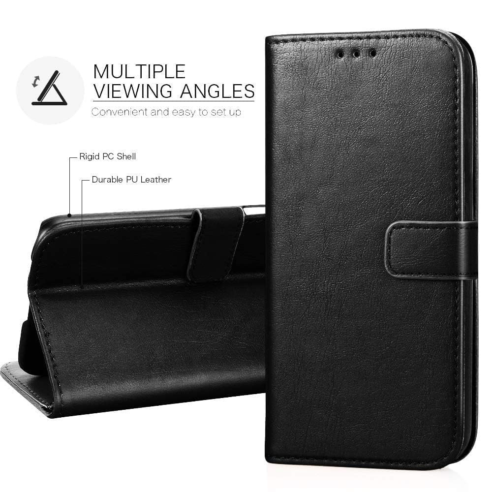 - Protective flip case with card pockets, wallet design, and magnetic closure