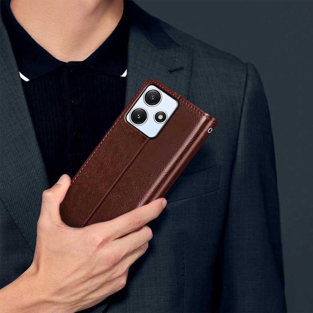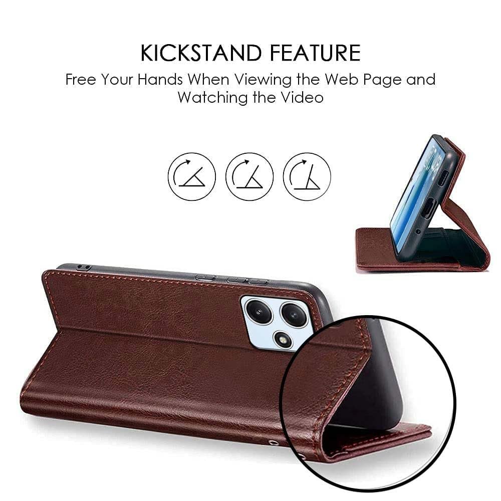 icall Shock Proof Flip Cover Back Case Cover for Redmi 12 5G / Poco M6 Pro 5G (Flexible | Leather Finish | Card Pockets Wallet & Stand